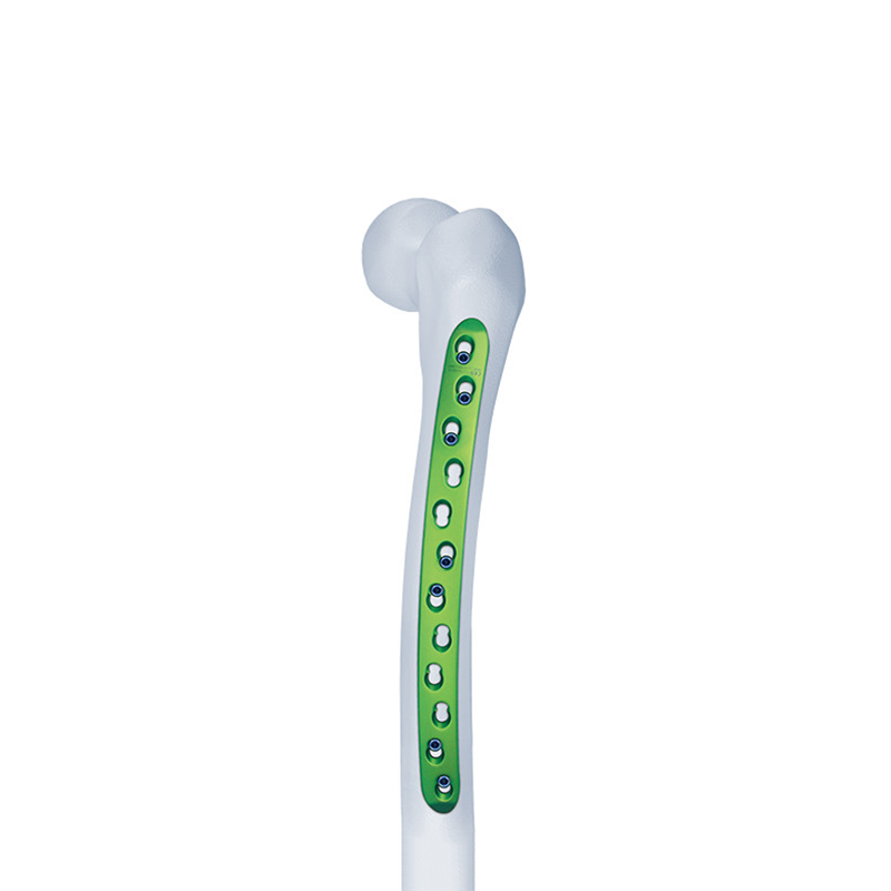 Изогнутая фиксирующая компрессионная пластина для бедренной кости (широкая) представляет собой тип хирургической пластины, используемой в ортопедической хирургии для стабилизации переломов бедренной кости.Он предназначен для использования в тех случаях, когда другие методы лечения, такие как интрамедуллярная фиксация гвоздями или традиционная компрессионная пластина, могут оказаться неподходящими или эффективными.Пластина изготовлена из титанового сплава и имеет изогнутую форму, которая обеспечивает улучшенную посадку и стабильность в бедренной кости.
