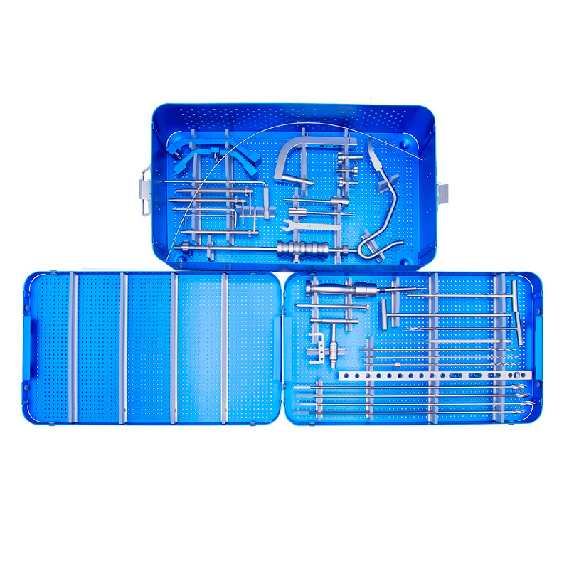 Набор инструментов для большеберцового интрамедуллярного гвоздя используется во время хирургической процедуры, известной как большеберцовый интрамедуллярный гвоздь.Эта процедура обычно выполняется под общей анестезией и включает в себя небольшие надрезы на коже возле колена и лодыжки.Затем с помощью хирургических инструментов из набора просверливают отверстие в верхней части большеберцовой кости и вставляют большеберцовый интрамедуллярный стержень в центр кости.Затем гвоздь закрепляют на месте стопорными винтами, а разрезы зашивают швами или скобками.
