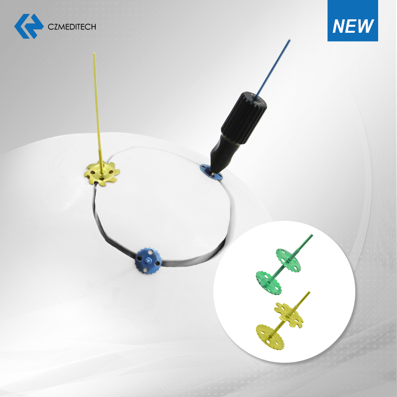 Материал имплантата: титановый сплав. Возможное применение: фиксация костных лоскутов при нейрохирургической краниотомии. Детская черепно-лицевая хирургия.